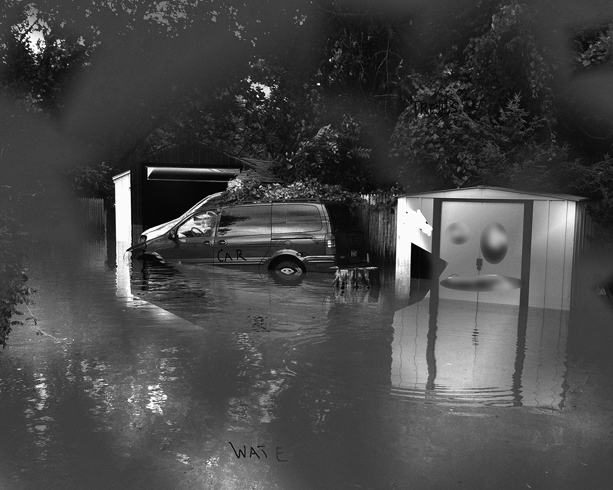 For her series of "Potographs," Erin Jane Nelson uses digitally re-structured photographs to make silver gelatin darkroom prints. Confusing the relationship between digital and analog photography, these grayscale prints contain incredible pictorial depth and a complex iconography.