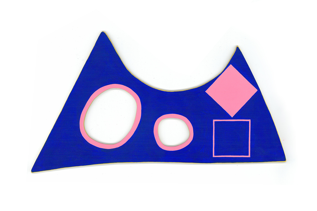 Hotchkiss' painted, double-sided forms exist in between two and three dimensions. Drawing on an interest in graphic design, handmade craft, and the visual language of science, Hotchkiss creates playful and colorful imagery which is familiar yet undefined. Hotchkiss was featured in the 2014 City Limits exhibition, "Making Space."