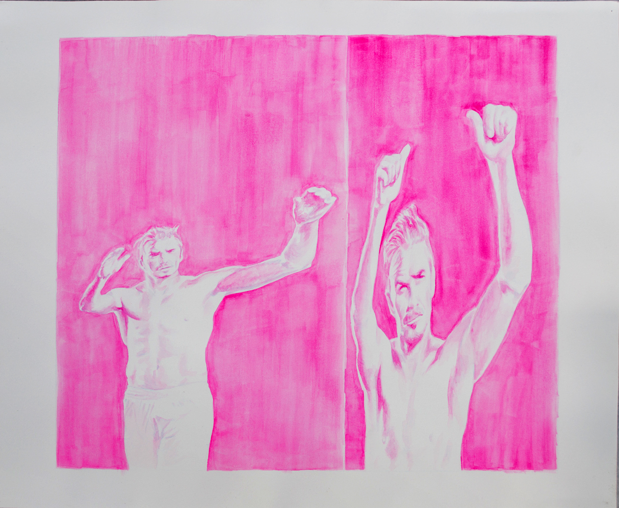Lasley's figurative paintings and drawings, featuring subjects which range from athlete David Beckham, male bodybuilders to himself, feature distorted and exaggerated physiques, always skeptical of masculine artifice. These works were featured at City Limits in the 2014 exhibition, "Making Space."