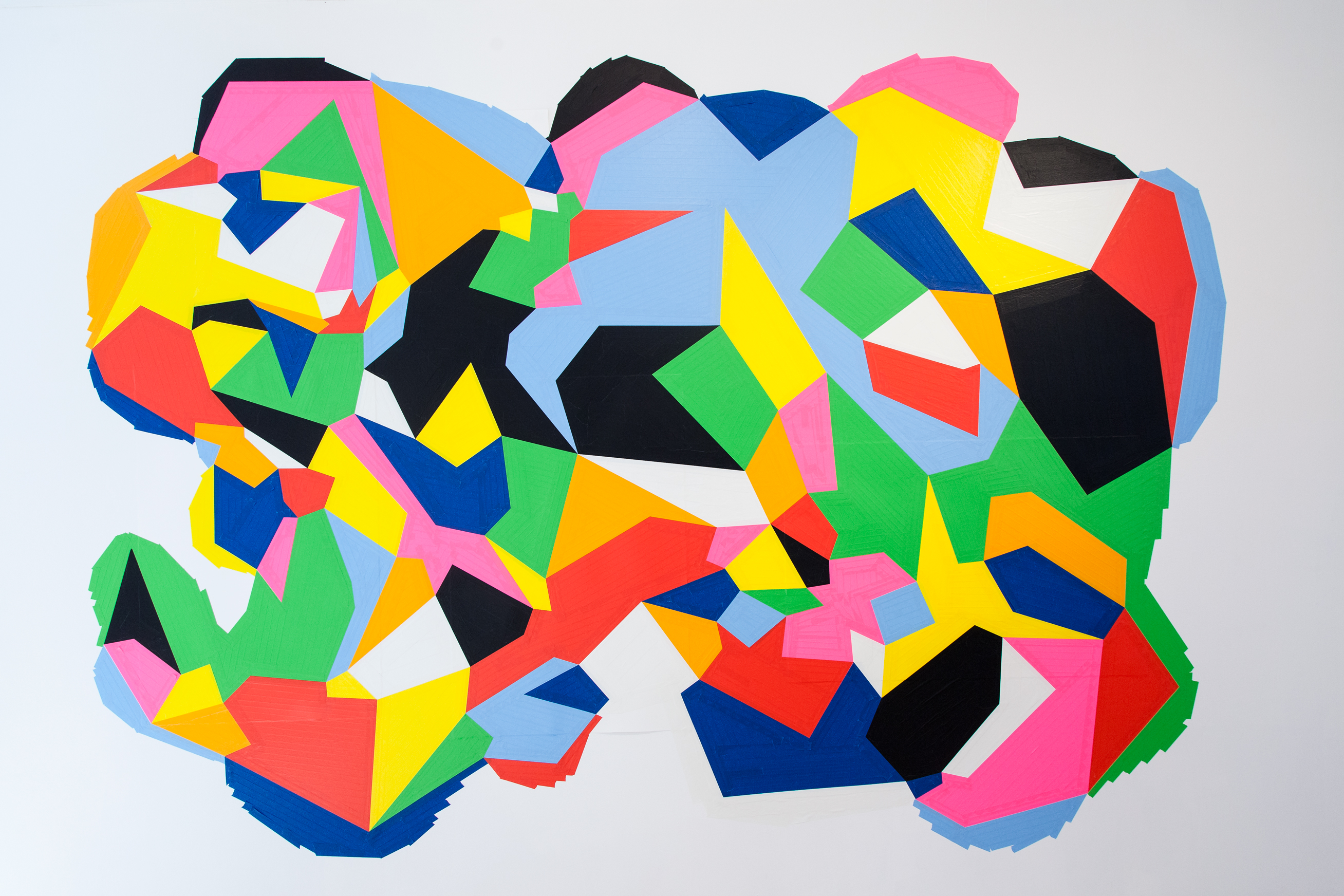 In the exhibition "" Making Space" at City Limits, Mell created a wall mural out of archival tape, fastening several few sheets of paper to the wall underneath the tape. The installation, created by projecting a small scribbled drawing onto the wall, was then "filled in" with areas of color using a unique, repetitive pattern. The installation was completed when the underlying paper was cut from the wall, creating 4 smaller compositions.
