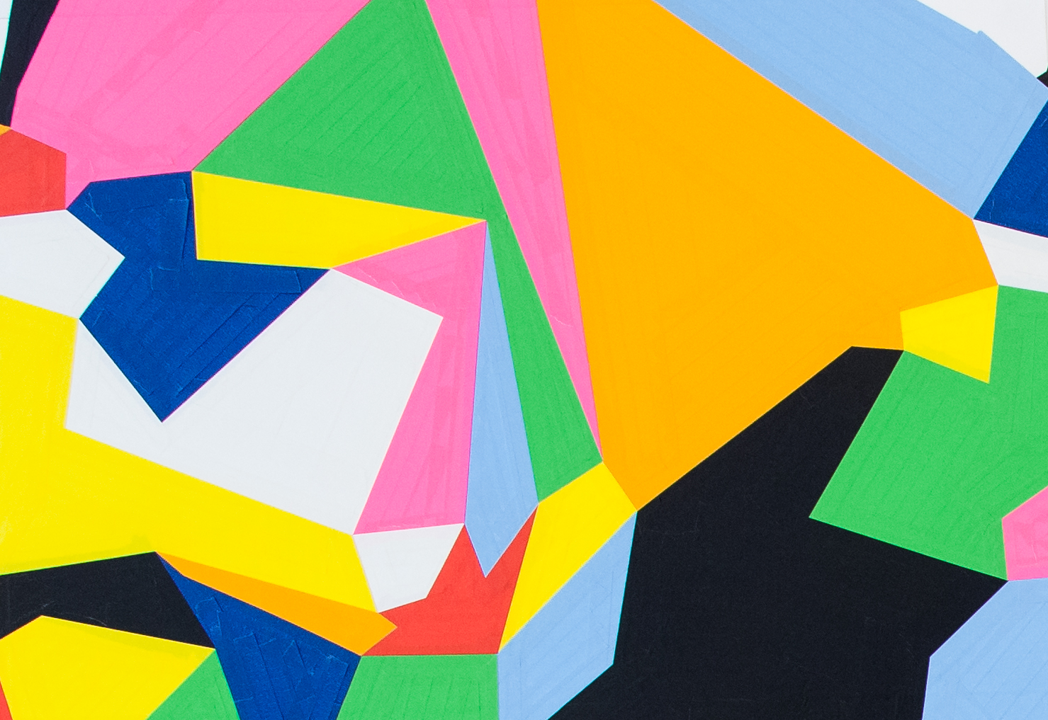 In the exhibition "" Making Space" at City Limits, Mell created a wall mural out of archival tape, fastening several few sheets of paper to the wall underneath the tape. The installation, created by projecting a small scribbled drawing onto the wall, was then "filled in" with areas of color using a unique, repetitive pattern. The installation was completed when the underlying paper was cut from the wall, creating 4 smaller compositions.