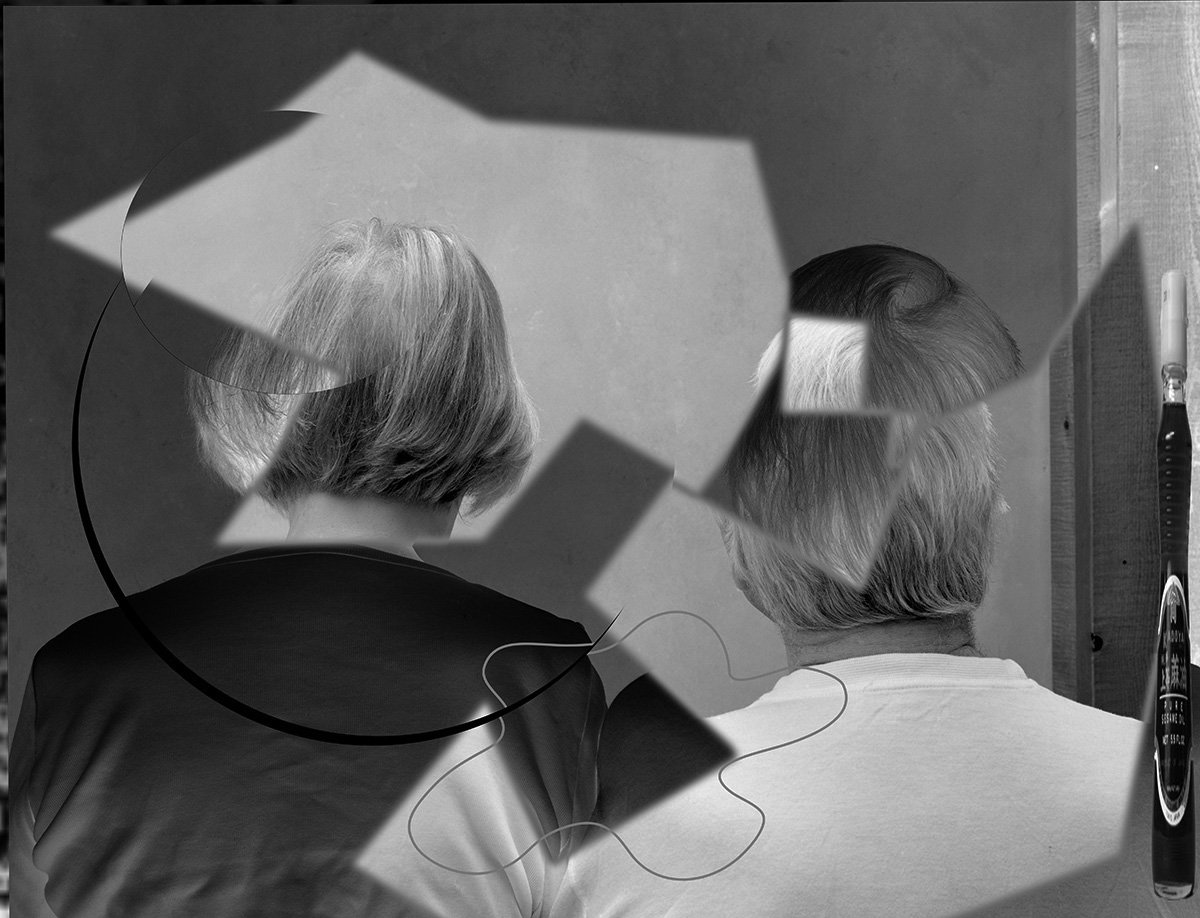 For her series of "Potographs," Erin Jane Nelson uses digitally re-structured photographs to make silver gelatin darkroom prints. Confusing the relationship between digital and analog photography, these grayscale prints contain incredible pictorial depth and a complex iconography.