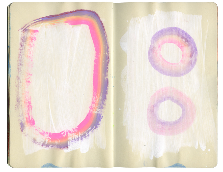 These prints feature high-resolution scans of paintings made by Christopher within Moleskine sketchbooks, blown up to a scale more common of a painting on canvas. Christopher, who has been cataloging and archiving her "sketchbook paintings" for the past several years, personally selected these works for printing and inclusion as part of the "Trapper Keeper" exhibition held at City Limits in January 2014.