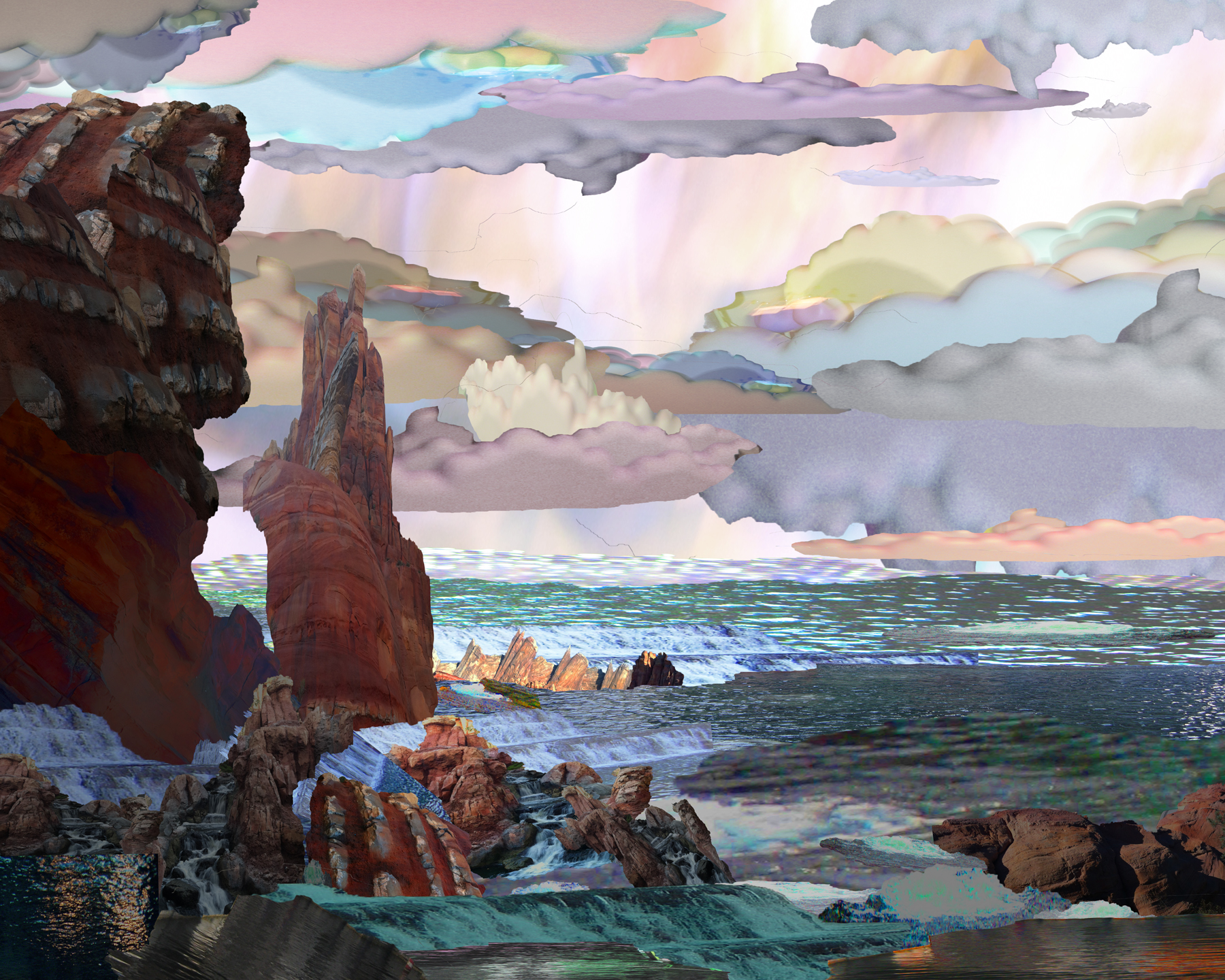 Oakland-based Mary Anne Kluth explores the nexus of landscape imagery, narrative, and ideas. Inspired by vivid descriptions of the California landscape written by Whitney Expedition botanist William Brewer between 1860-1864, she explores the visual translation and contemporary theme park simulacra using her my own collection of snapshots of fake theme park landscapes. Piecing together digital and hand-cut collages to match Brewer’s journal entries, Kluth produces improbable Romantic landscapes. Kluth was featured in the 2014 City Limits exhibition, "Making Space."