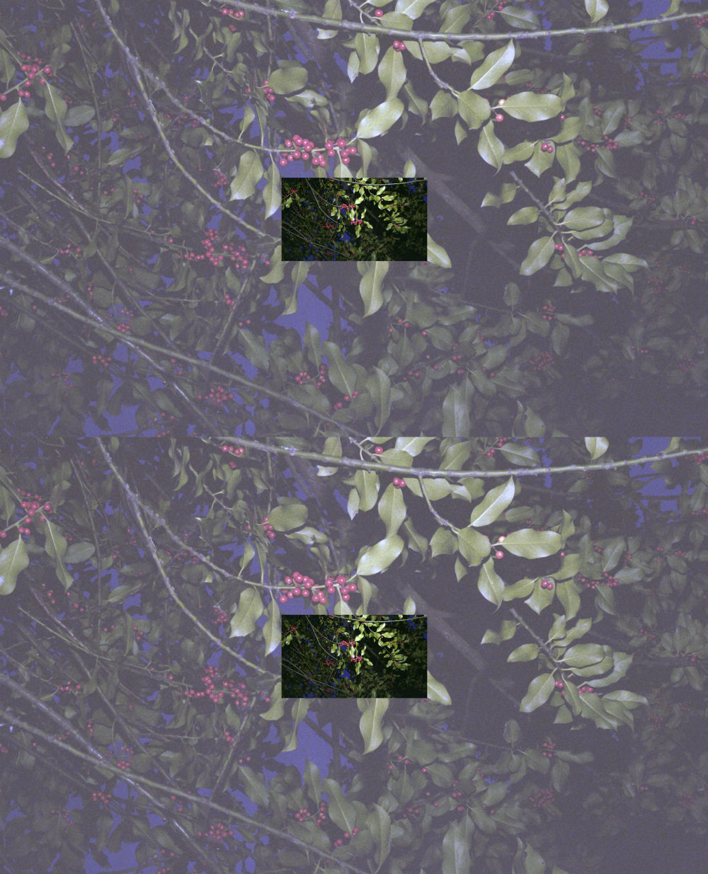 Yancey creates video and installation work through a multi-disciplinary practice that explores the materiality of the poetic voice. These prints (stills from her digital video work) evidence her creative process, which incorporates digital and physical layerings of plant life, fabric patterns, art materials, and the body of the artist.